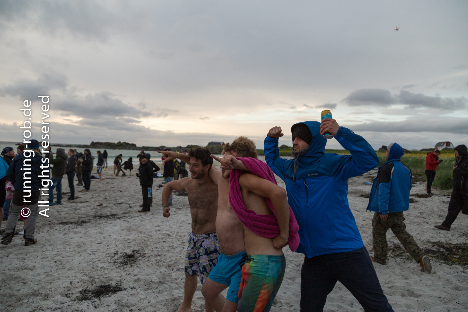 Ganz verrückt wurde es, als das Lagerfeuer brannte: es gab echt fast hundert Verrückte, die in das eiskalte Meer rannten!